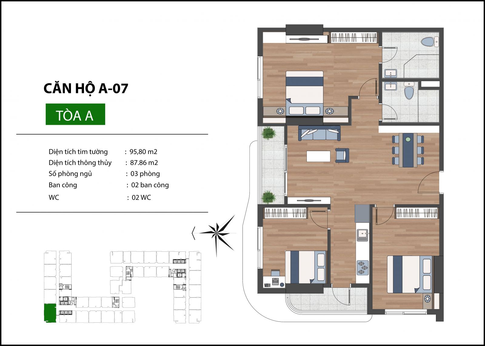 Diện tích: 95,8 m2