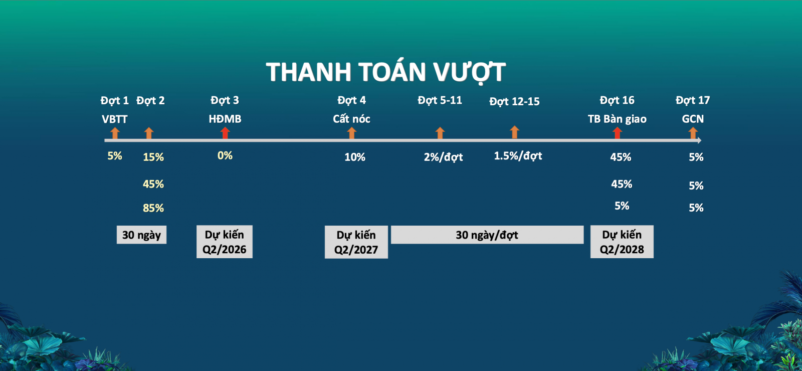 Hơn 30 tiện ích cao cấp: Hồ bơi tràn bờ, BBQ, đường dạo bộ Zen Garden,gym, yoga, khu vui chơi trẻ em, thư viện đọc sách....Thiết kế phân tầng tiện ích theo độ tuổi, tạo không gian riêng cho người lớn, trẻ nhỏ và người cao tuổi – hiếm thấy ở các dự án cùng phân khúc.