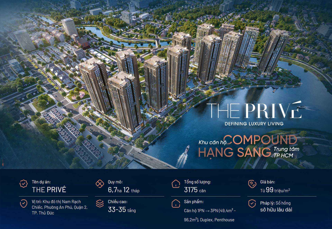 Dự án The Privé với quy mô tổng diện tích 6,71ha gồm 12 block chiều cao 34-35 tầng, tổng số lượng 3.175 sản phầm gồm các loại hình: Căn hộ cao cấp, Duplex, Penthouse. Trong đó: