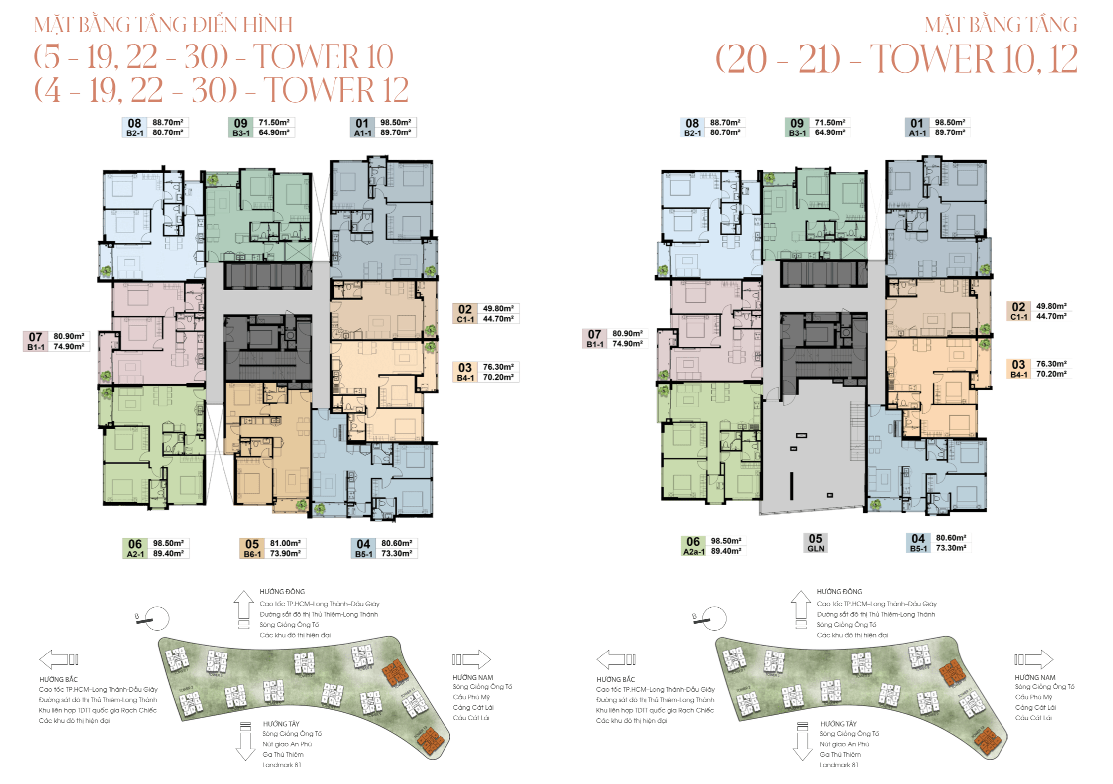 - Phân Khu 2 : Gồm : Tháp 5 – Tháp 6 – Tháp 7 – Tháp 8
